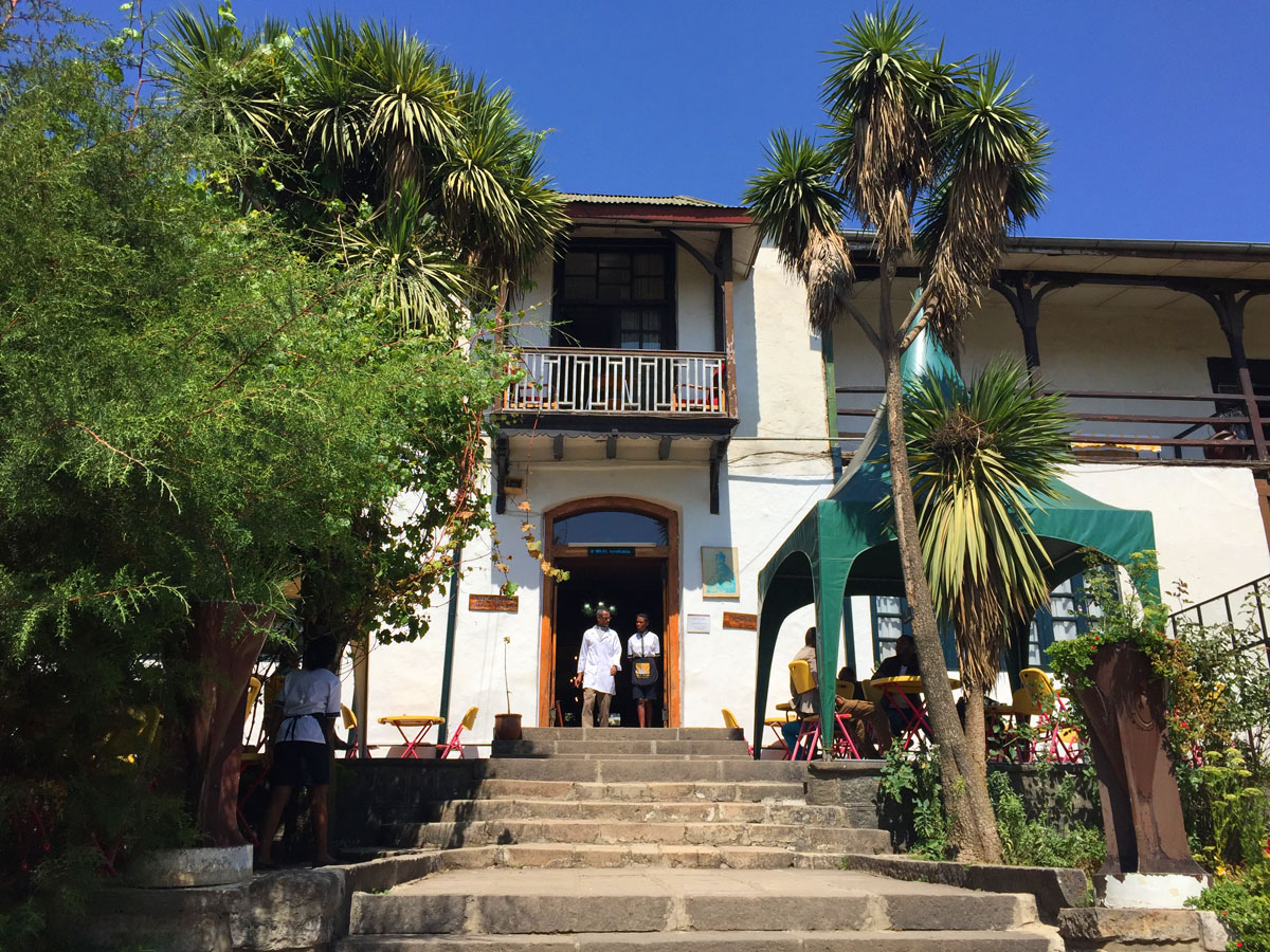 In my first week in Addis Ababa, I visited the Itegue Taitu Hotel in Piazza District. It is the first hotel in Ethiopia, built by Ethiopian Emperor Menelek II and named after his queen, Taitu Betul. The emperor and queen spent their honeymoon there together. It was a truly lovely place, old but only increased her charm by the years, peaceful and quiet, the patio fully shaded by a grapevine canopy. It was an oasis removed from this faceless city. I felt like stepping into a real world Grand Budapest Hotel.