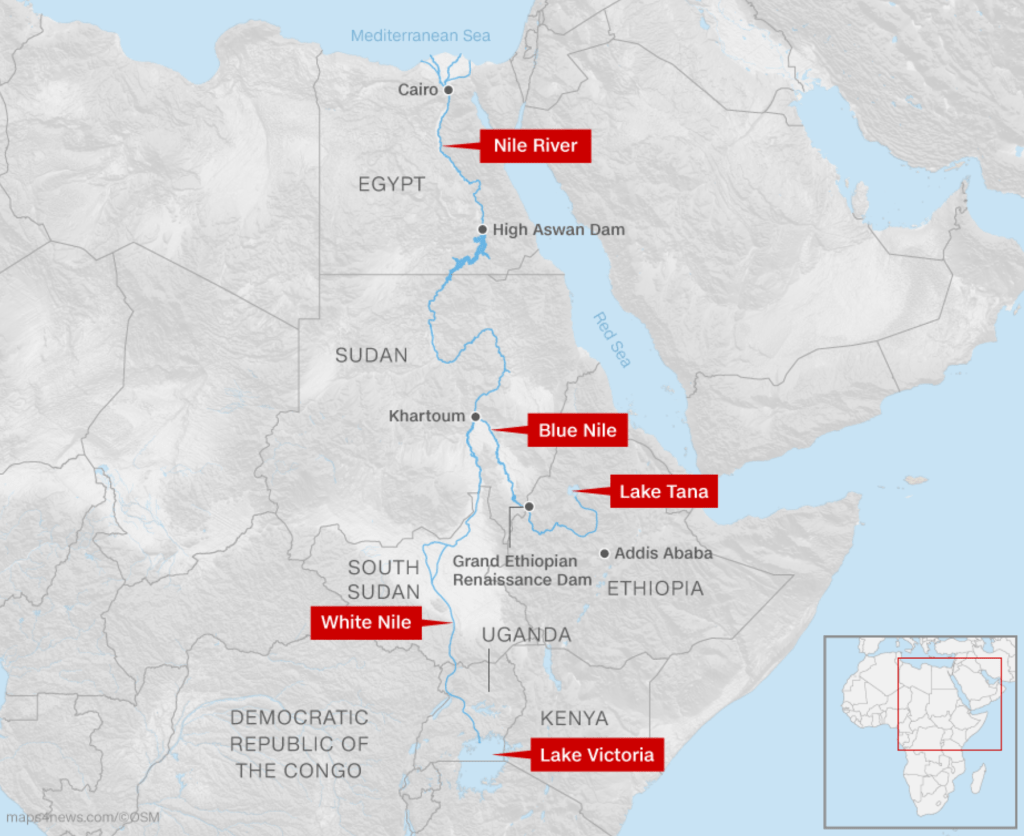 The Blue Nile (or Abbay River ጥቁር አባይ, in Amharic) is the shorter tributary among the two. But it carries 80% of the water of the Nile down to Nile proper and Egypt. It originated in Lake Tana, on the Ethiopian Plateau, next to the city of Bahir Dar of the Amhara Region. This region was christened since biblical times. Ancient churches and monasteries scattered across the numerous islands in Lake Tana, which are designated as a World Heritage Site by UNESCO. From there, the Blue Nile travels down the Blue Nile Falls and Blue Nile Gorge, which is deeper than the Grand Canyon on the Colorado River, straddled by the Great Ethiopian Renaissance Dam, and flows into Sudan. In my previous hometown of Addis Ababa, half of the city is shadowed by the Blue Nile watershed, known as Mount Entoto. I always find it amazing how the three countries, Ethiopia, Sudan, and Egypt are connected, even though they are worldly different.